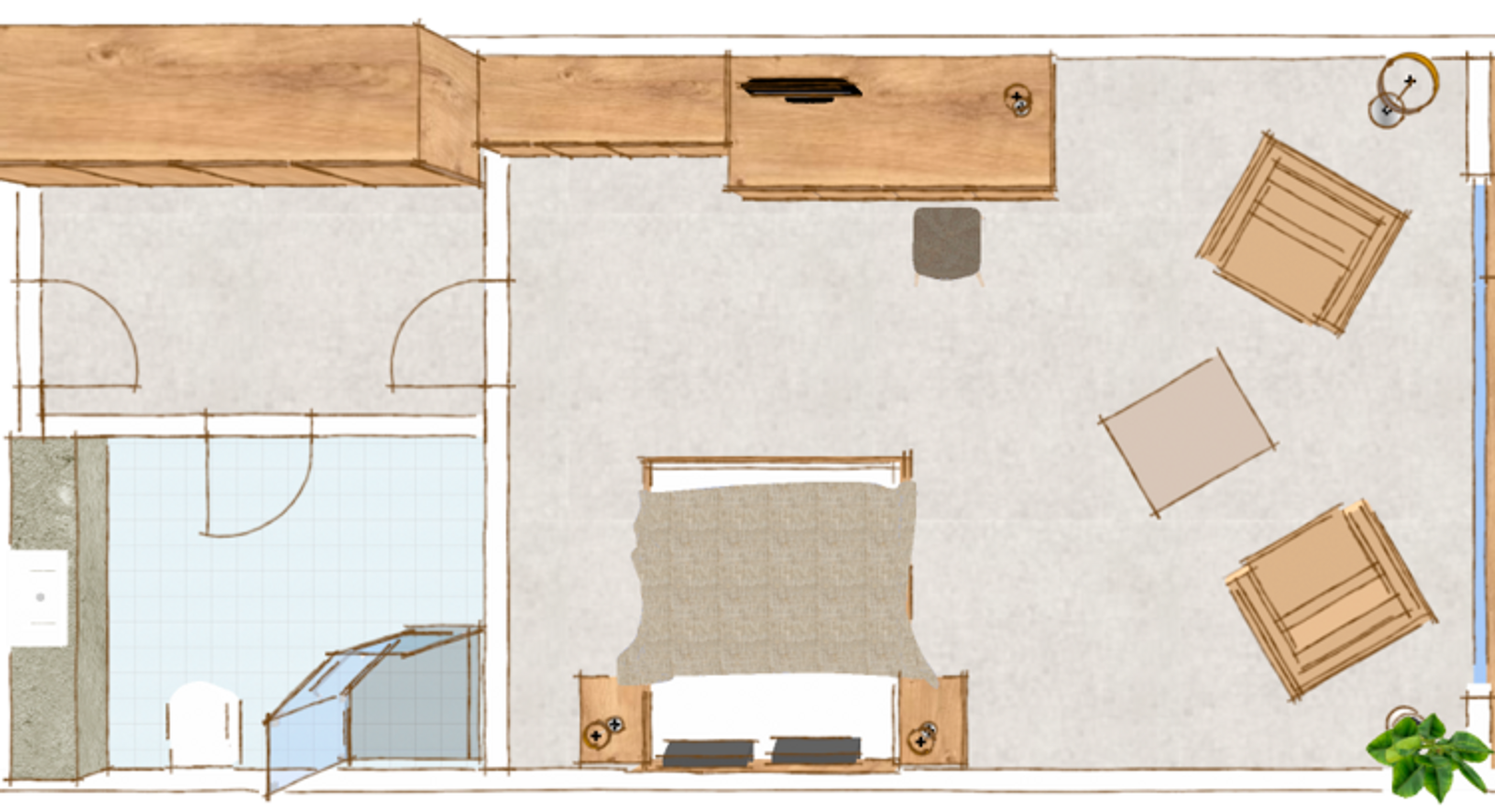 Diese Zimmer verfügen über ein sehr komfortables Doppelbett mit 2m Breite und 2,10m Überlänge, eine kleine Sitzecke und eine Terrasse oder einen Balkon sowie Bad oder Dusche (mit Fön).